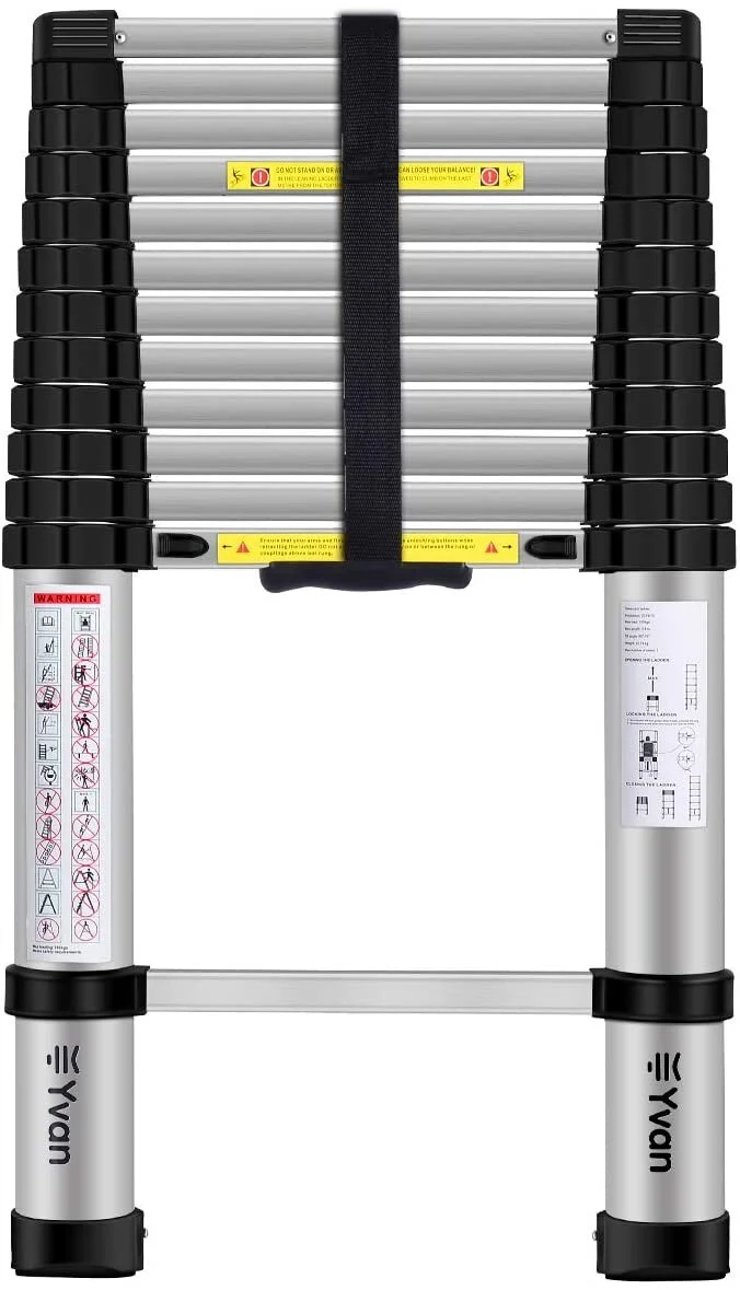 If your RV does not have a ladder built on it, you absolutely must have one. Getting on to the roof of your RV is actually a fairly common occurrence, especially for us with our solar panels. However, even if you do not have solar panels to clean and maintain, you will still need to get on top of your RV to clean the roof, tops of your slides, check your seals for any cracking, check for leaks, etc. Good RV maintenance is essential and with that comes a ladder. A telescoping ladder allows you to have a full-size ladder but it only takes up a fraction of that space for storage. We highly recommend you get one!